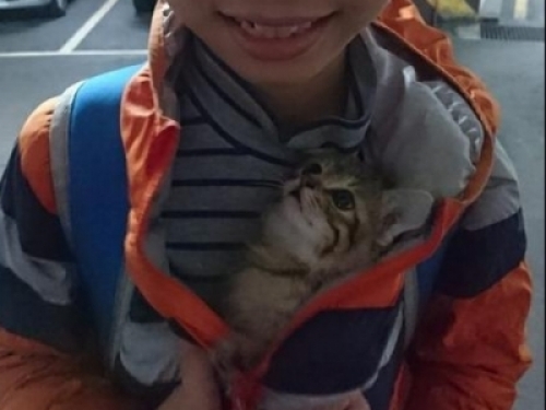 Grace Yang的2個兒子分別讀小學三年級和六年級,家中曾經養過2只鼠寶,在小老鼠過世之後,兄弟倆便考慮著要養狗還是養貓,但是緣分幫它們做出決定。Grace Yang說,兒子班上同學家長經常救援貓咪,去年11月22日她要去接小孩時接到電話,「同學媽媽說在新店山上水溝有隻小貓,剛好原本照顧貓咪的中途媽媽生病,那時又天冷下雨,她就希望先安置在我們家幾天,如果實在沒辦法,她也有時間再去詢問其他中途。」
