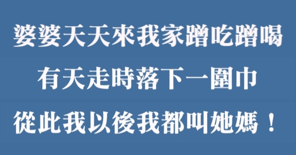 各位讀者安安阿~~我是有錢人這麼想小編Choco!今天要來說說關於「婆婆天天來我家蹭吃蹭喝,有天走時落下一圍巾,從此我以後我都叫她媽!」,不知道大家有沒有興趣呢!一起來看看吧!
