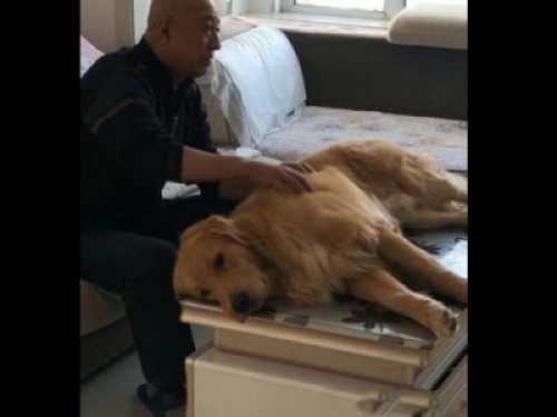 網友的爺爺自從奶奶去世後,他整天在家裡悶悶不樂的,也不願意搬到網友家去,就只想守著自己的小房子。可網友又擔心爺爺長時間的一個人悶在家裡會把自己悶壞了,那該怎麼辦呢?這個時候網友突然想到自己家有條養了三年多的金毛,這狗非常的乖巧,正好最近自己工作忙,也沒時間照顧它,要不就給爺爺送去吧,這樣子還能陪他解解悶。