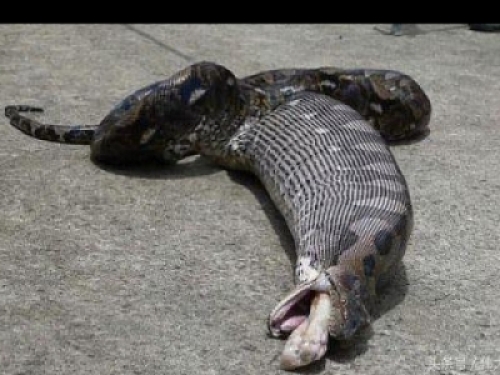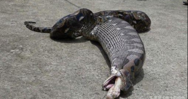 泰國巴吞他尼府59歲女子Saowarak Charoen回家後,在廚房水槽下面驚見一條5.18公尺長的巨大蟒蛇,嚇得馬上報警。2名警察、3名動物救援人員和1名記者很快就到達現場,他們把蟒蛇拖出來後,發現蟒蛇的肚子非常腫脹,似乎吞下了什麼。