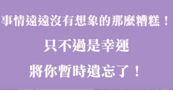 事情遠遠沒有想象的那麼糟糕,只不過是幸運,將你暫時遺忘了!!