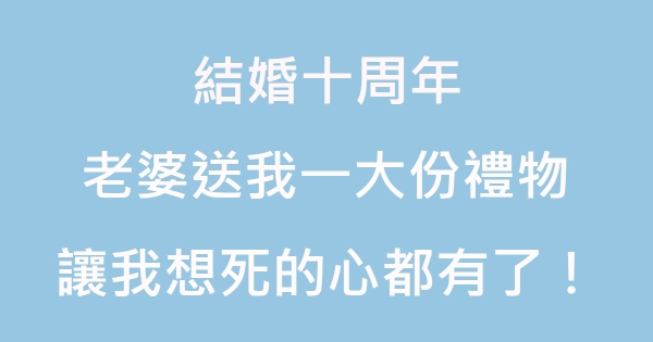 結婚十周年,老婆送我一大份禮物,讓我想死的心都有了!