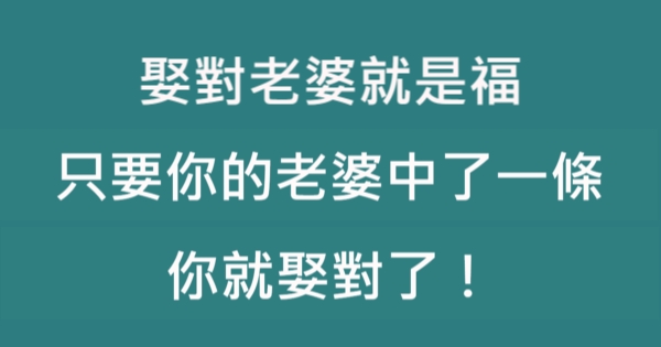 娶對老婆就是福,只要你的老婆中了一條,你就娶對了!!!