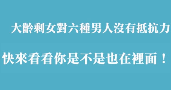 各位讀者安安阿~~我是有錢人這麼想小編Ant!今天要來說說關於「大齡剩女對六種男人沒有抵抗力,快來看看你是不是也在裡面!」,不知道大家有沒有興趣呢!一起來看看吧!