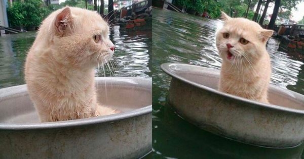 淹大水後,受困的喵星人求兩腳獸(人類)救牠,但救下來後讓人哭笑不得!