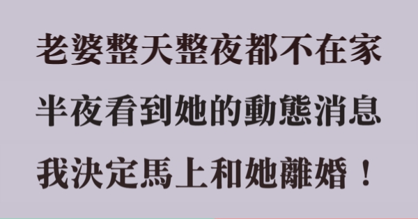 老婆整天整夜都不在家,半夜看到她動態消息,我決定立刻和她離婚!