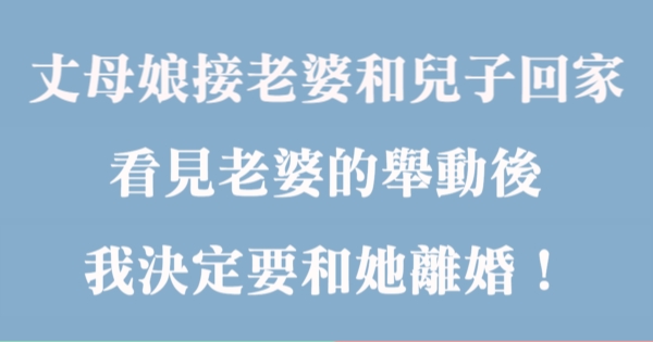 哈摟哈摟各位讀者~~我是有錢人這麼想小編Pineapple!今天要來說說關於「丈母娘家接老婆和兒子回家,看見老婆的舉動後,我決定要和她離婚!」,不知道大家有沒有興趣呢!一起來看看是怎麼樣的事吧!
