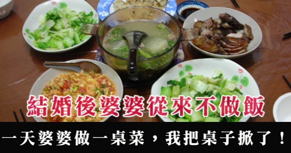結婚後婆婆從來不做飯,一次婆婆做了一桌菜,我直接把桌子掀了!