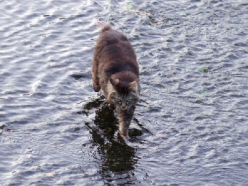 根據kknews的報導,愛貓的人都知道大部分的貓有一個習性是「害怕水」,通常對於身體碰到水都會頑強抵抗,不過近日一位日本網友在河的對岸看見一隻棕色貓咪,就跟它打了個招呼,揮了揮手,沒想到這貓竟熱情的直接從對岸渡河過來,照片被放到網路上後,笑翻一群網友,直呼:這得收編啦!