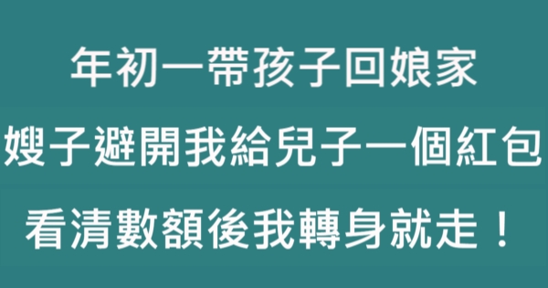 我當時氣得不行,想想這些年我為娘家做了這麼多,過年了給孩子紅包就是圖個喜慶,嫂子的行為真讓我心寒。