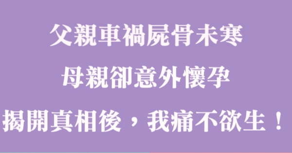大家好,我是有錢人這麼想小編Pineapple!今天要來說說關於父親車禍屍骨未寒,母親卻意外懷孕,揭開實情的真相後,我痛不欲生!的事!不知道大家對於這個有多了解呢?一起來看看吧!