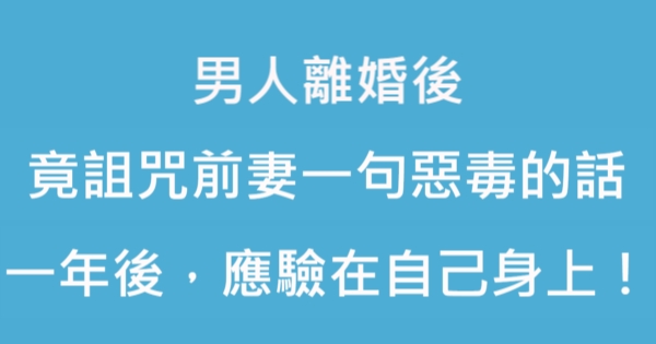 大家好,我是有錢人這麼想小編Pineapple!今天要來說說關於男人離婚後,竟詛咒前妻一句惡毒的話,一年後,他的話應驗在自己身上!的事!不知道大家對於這個有多了解呢?一起來看看吧!
