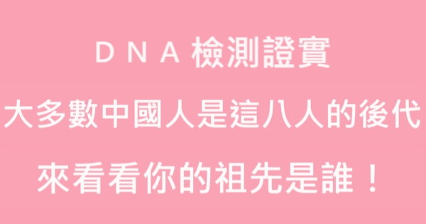 看完後是不是覺得Pineapple小編在有錢人這麼想分享的歷史文化文章很好呢?想看更多好文,或是喜歡有錢人這麼想的文章的話,可以按讚追蹤經典成功案例分享並分享這篇「DNA檢測證實,大多數中國人都是這八個人的後代,來看看你的祖先是誰!!!」出去給大家一起看看喔!