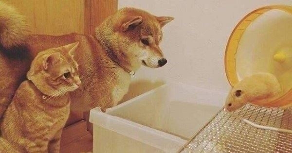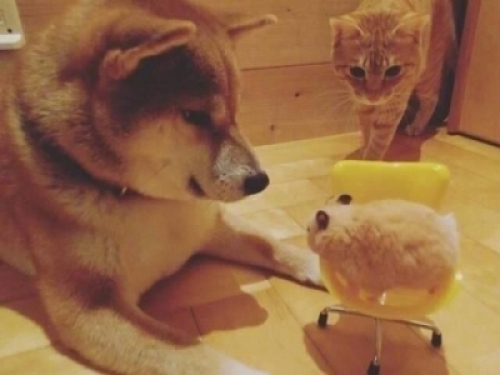 一隻柴柴跟橘貓的組合,聽起來好像沒什麼特別?但如果加了一隻倉鼠呢…這位網友原本隻養了一隻橘貓和一隻柴柴,後來他們又添了一隻倉鼠,兩隻毛小孩的反應,還真是莫名其妙地和諧呀!
