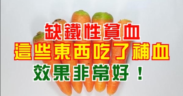 胡蘿蔔:胡蘿蔔含有很高的維生素B、C,同時又含有一種特別的營養素-胡蘿蔔素,胡蘿蔔素對補血極有益,用胡蘿蔔煮湯,是很好的補血湯飲。不過許多人不愛吃胡蘿蔔,我個人的做法是把胡蘿蔔榨汁,加入蜂蜜當飲料喝。