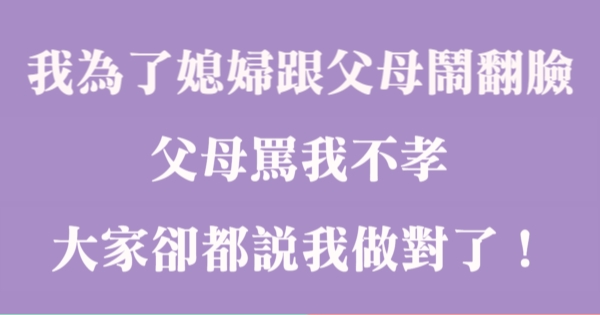 我為了媳婦跟父母鬧翻臉,父母說我不孝,大家卻說我做對了!