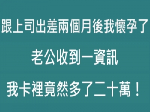 大家好,我是有錢人這麼想小編Pineapple!今天要來說說關於跟上司出差兩個月後我懷孕了,老公收到一資訊,我卡裡竟然多了二十萬!的事!不知道大家對於這個有多了解呢?一起來看看吧!
