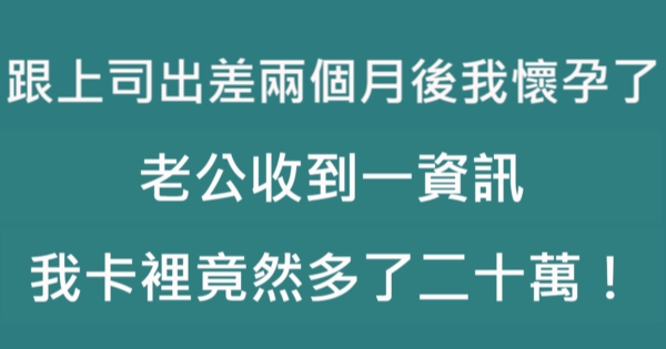跟上司出差兩個月後我懷孕了,老公收到一資訊,我卡裡多了二十萬!