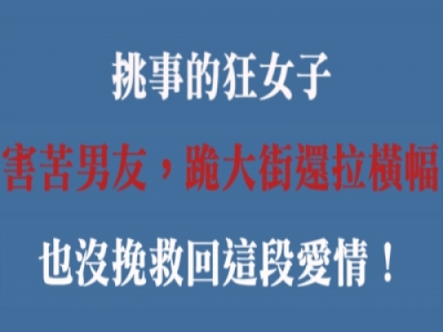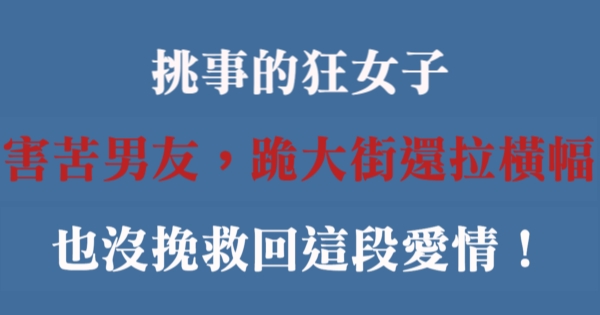 挑事的狂女子,害苦男友,跪大街拉橫幅,也沒挽救回愛情!