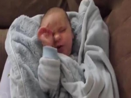 寶寶做完這一系列動作,終於完全睜開了眼睛,爸爸看到寶寶睜開眼睛睡醒了,臉上馬上露出了笑容,一臉期待跟關愛地看著寶寶,可是讓爸爸沒想到的是,寶寶睜開眼睛後,睜大著眼睛,緊皺著眉頭,抿著小嘴好像一臉怒氣地盯著爸爸。