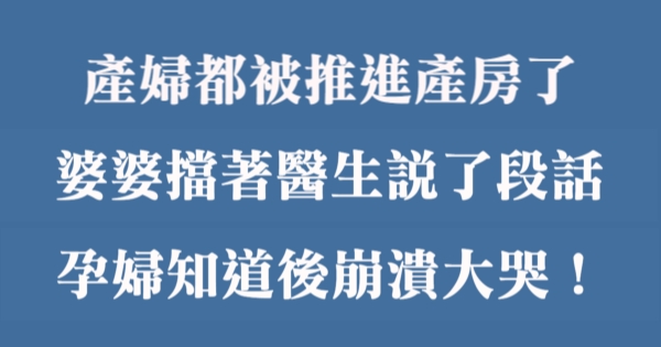產婦都被推進產房了,婆婆擋著醫生說了段話,孕婦知道後崩潰哭了!