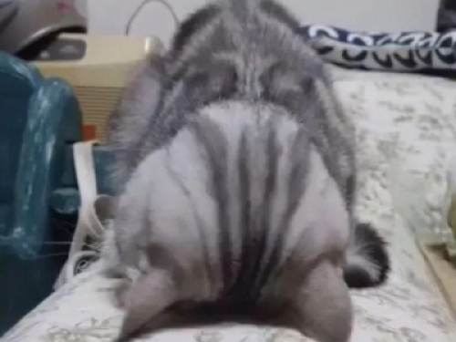 貓咪們完全把臉埋起來,像是跪拜的姿勢一樣,睡的超級香,相似度可以說是百分之百了。