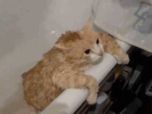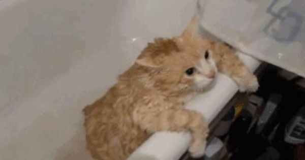 這天女子好不容易把貓主子抓到浴室,放進平常用的浴缸裡洗澡,突然忘記拿沐浴露了,女子只好先停止給橘貓洗澡,出去拿了個沐浴露,回來之後看到橘貓嘗試著跳出浴缸裡,但是死活跳不出去。