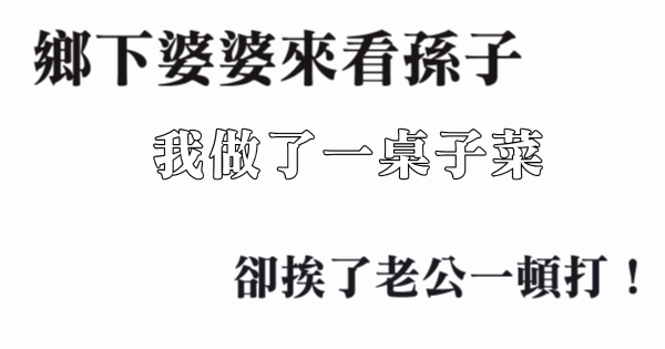 大家好,我是有錢人這麼想小編Choco!今天要來說說關於鄉下婆婆來看孫子,我做了一桌子菜,卻挨了老公一頓打!的事!不知道大家對於這個有多了解呢?一起來看看吧!