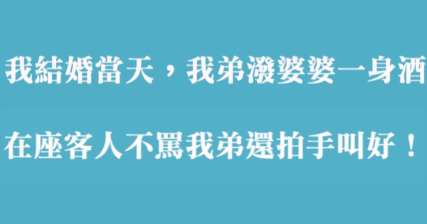 我結婚當天,我弟敬酒潑婆婆一身的酒,在座各位不罵我弟還拍手叫好!