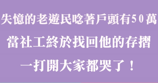 失憶老遊民不斷唸著戶頭有50萬卻沒人相信!社工終於找回他的存摺!一打開大家都哭了!