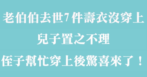 老伯伯去世7件壽衣沒穿上,兒子置之不理,侄子幫忙穿上後驚喜來了!!!