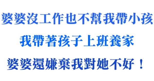 婆婆沒工作也不幫我帶小孩,我帶著孩子上班賺錢,婆婆還嫌棄我對她不好!