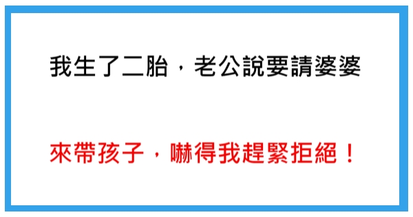 我生二胎,老公說要請婆婆來帶孩子,嚇得我趕緊拒絕!