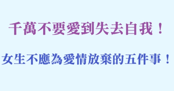 千萬不要愛到失去自我!女生不應為愛情放棄的五件事!!!