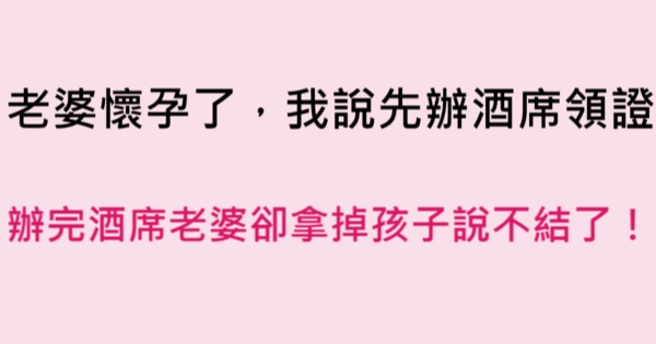 各位讀者安安阿~~我是有錢人這麼想小編Choco!今天要來說說關於「老婆懷孕了,我說先辦酒席領證,辦完酒席老婆卻拿掉孩子說不結了!」,不知道大家有沒有興趣呢!一起來看看吧!