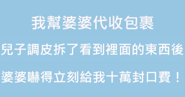 幫婆婆代收包裹,兒子調皮拆了,看到內容物後婆婆嚇得立刻給我十萬「封口費」!