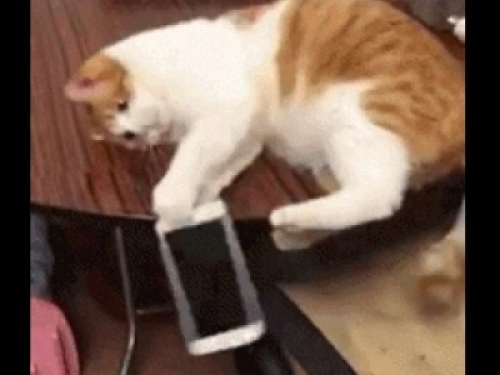 這天網友回到家裡,把手機放在了桌子的上面,貓咪看到後馬上就好奇的擺弄起來。