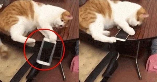 我的手機啊!眼看手機就快被「摔到地上」喵星人「一個move」成功救回!網友驚呼:根本神喵手~