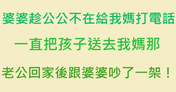 婆婆趁公公不在給我媽打電話,一直把孩子送去我媽那,老公回家後跟婆婆吵一架!