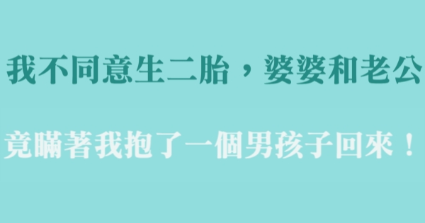 就在我拒絕了不知道婆婆和老公的多少次“好意”後,他們也不勸我了,因為我不同意,孩子也生不了。本以來他們不會再提要二胎的事情了,誰知道婆婆和老公瞞著我抱養了一個男孩子回來。
