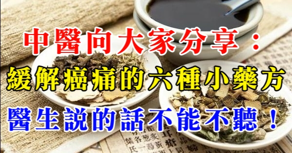 大家好,我是健康一點靈小編CA!今天要來說說關於「中醫向大家分享:緩解癌痛的六種小藥方,醫生說的話不能不聽!」的事!不知道大家對於這個有多了解呢?一起來看看吧!