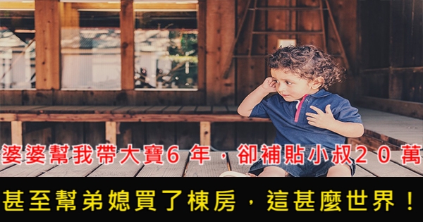 婆婆幫我帶大寶6年時間,卻補貼給小叔20萬,甚至幫弟媳買了棟房,這甚麼世界!