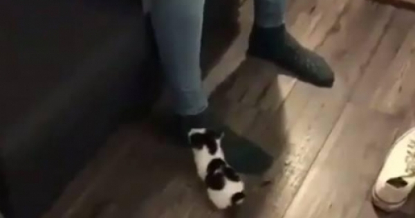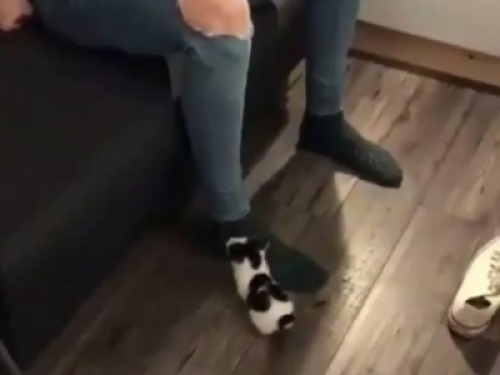 但是低頭看去的時候,發現並不是這樣,而是有一隻小奶貓不知道什麼時候“越獄”了出來,一個勁兒的往小夥子的膝蓋上爬去,這樣的一幕讓鏟屎官有些哭笑不得,這是鬧哪樣呢?