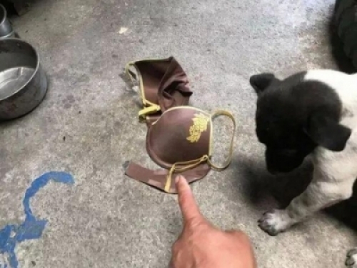 這個禮物怕是調皮的狗狗從鄰居家叼來的。主人看到這個“愛的禮物”差點崩潰,因為這位寵主是一位男士,狗狗不知道把哪位鄰居的內衣叼了回來,他不知道該怎麼向鄰居解釋。