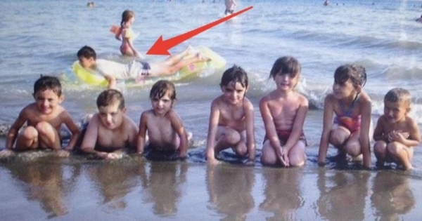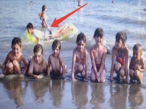 這張是Verona小時候去海邊玩拍的照片,一開始是她的表親在電腦上發現這張照片,所以才傳給她,因為Verona覺得太有趣了所以就拿給她的未婚夫Mirand看,沒想到他一眼就認出後面那個漂浮的男孩竟然就是自己!
