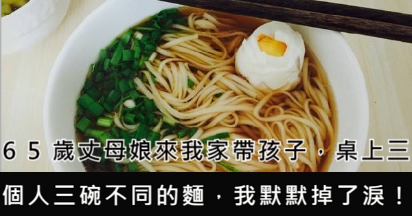 大家好,我是 Choco 今天來跟你說說 65歲丈母娘來我家帶孩子,桌上三個人三碗不同的麵,我默默掉了淚!吧!讓我們來看看!
