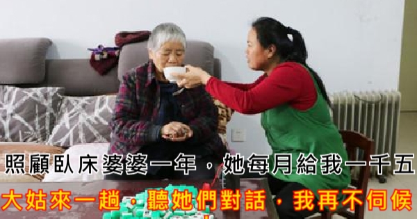 照顧臥床婆婆一年,她每月給我一千五,大姑來一趟,聽了她們對話,我再不伺候了!