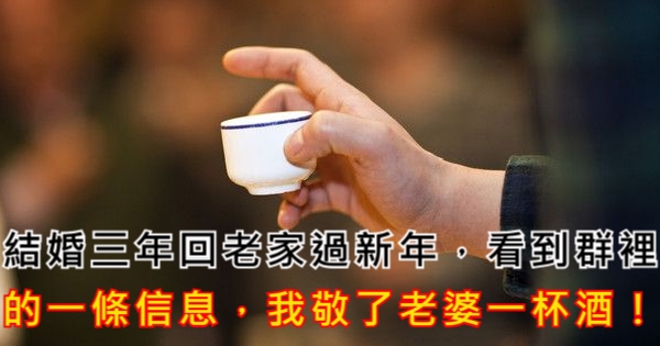 各位讀者安安阿~~我是有錢人這麼想小編Choco!今天要來說說關於「結婚三年回老家過新年,看到群裡的一條信息,我敬了老婆一杯酒!」,不知道大家有沒有興趣呢!一起來看看吧!