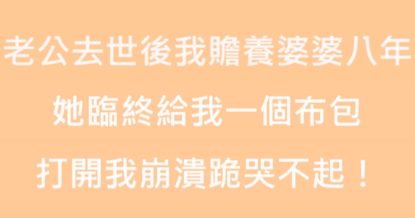 大家好,我是Pineapple 今天來跟你說說 老公去世後我贍養婆婆八年,她臨終給我一個布包,打開我崩潰跪哭不起!吧!