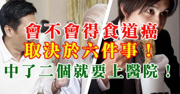 你會不會得食道癌,取決於六件事!中了二個就要上醫院!!